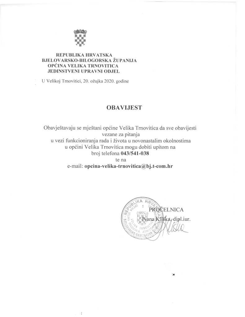 OBAVIJEST – kontakt broj telefona i e-mail adresa za upite građana