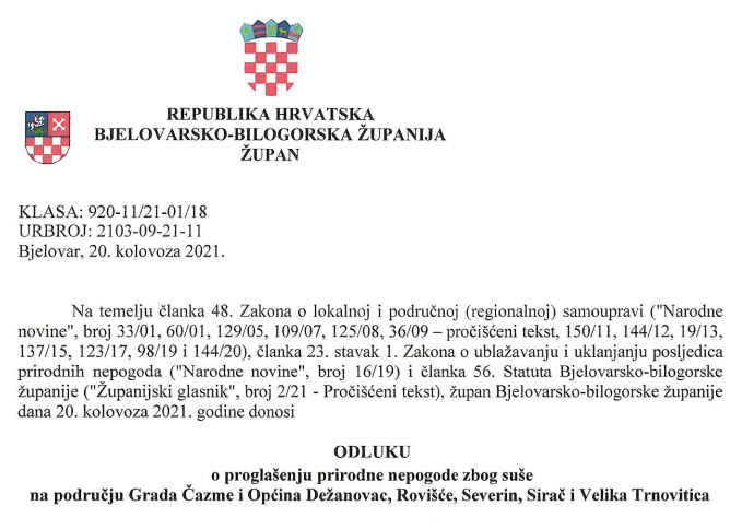 Odluka o proglašenju PN – suša -20.8.2021